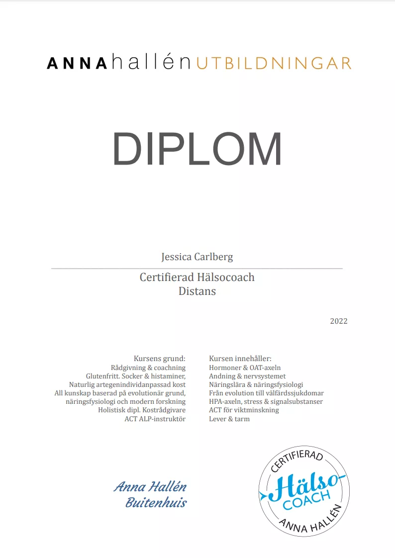 Nu är jag utbildad kostrådgivare, hälsocoach, ACT ALP instruktör, lymfrådgivare och lymfmassör. Nu med facit i hand så vet jag om varför jag har mått som jag har gjort många gånger i mitt liv och jag hade önskat att någon hade förklarat och berättat detta för mig.